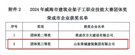 我公司榮獲2024年度建筑業(yè)架子工職業(yè)技能競(jìng)賽團(tuán)體三等獎(jiǎng)
